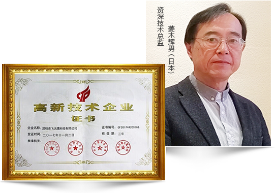 飛天鷹研發團隊以菱木輝男(電源行業世界級專家)為核心,擁有20多名電源領域碩士學位以上高級工程師,具有強大的新產品開發能力。至今,已獲得了數十項發明專利、實用新型專利、外觀專利。